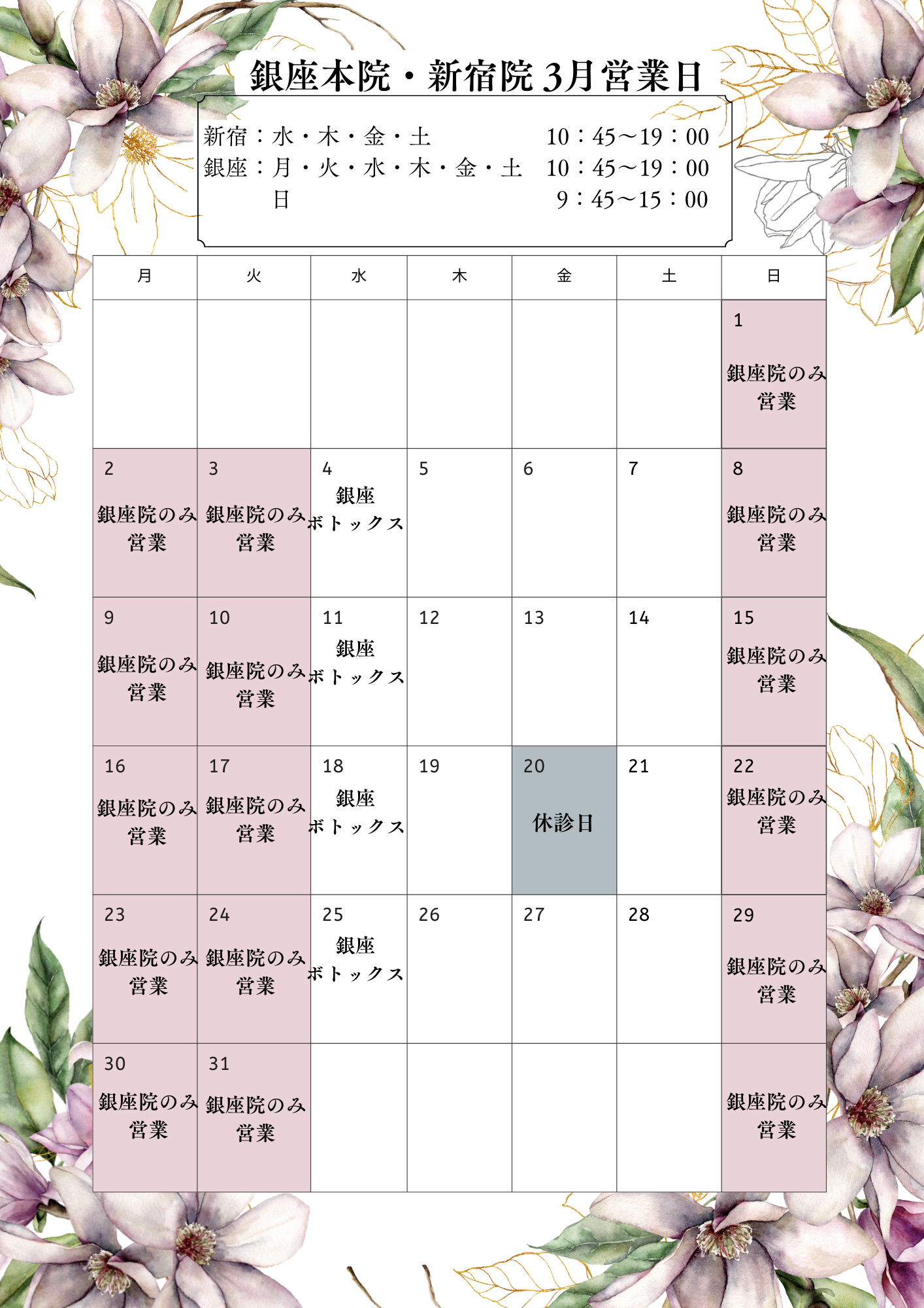 3月の営業日をお知らせいたします。