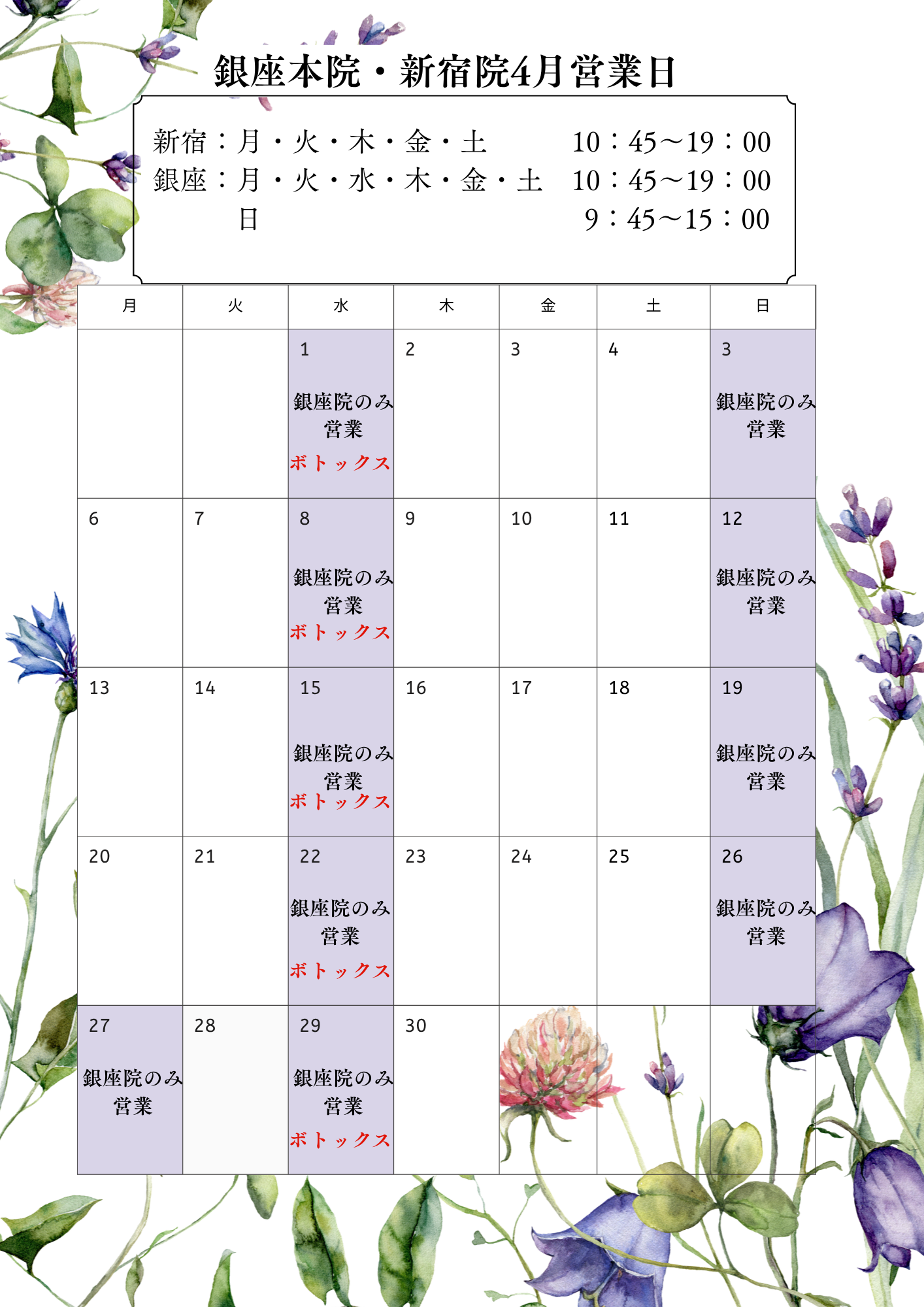 4月の営業日をお知らせいたします。